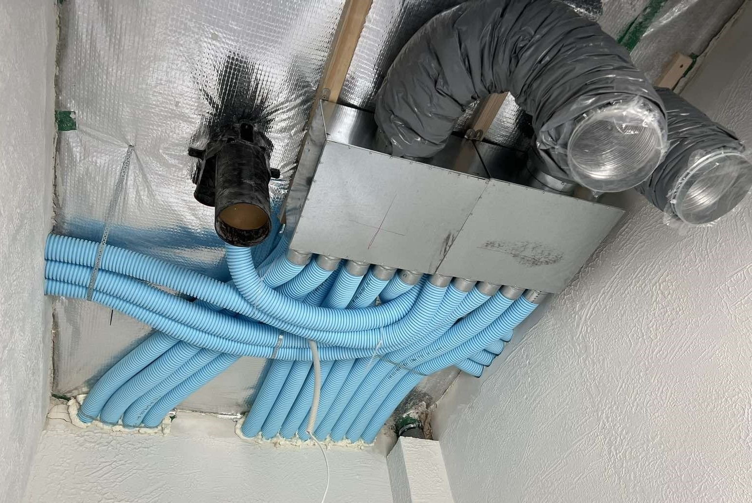 Į universalias antikondensacines oro paskirstymo dėžes jungiamas lankstus antibakterinis d75 ortakis ir triukšmo slopintuvai: