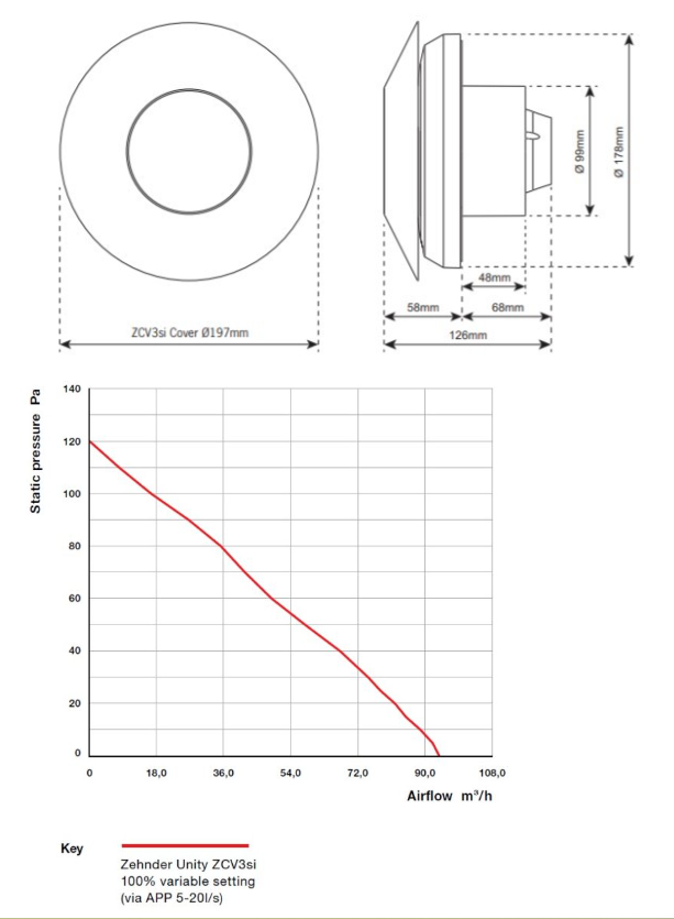 Užtikrintas našumas: kad būtų užtikrintas našumas ir reikalavimų atitikimas, Zehnder ZCV3si turi integruotą oro srauto matavimo technologiją, todėl tinkamas oro srautas garantuojamas visu jo naudojimo laikotarpiu. Patogioje mobiliojoje aplikacijoje galima matyti esamą oro srautą ar jo statistiką.